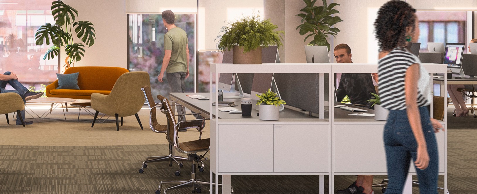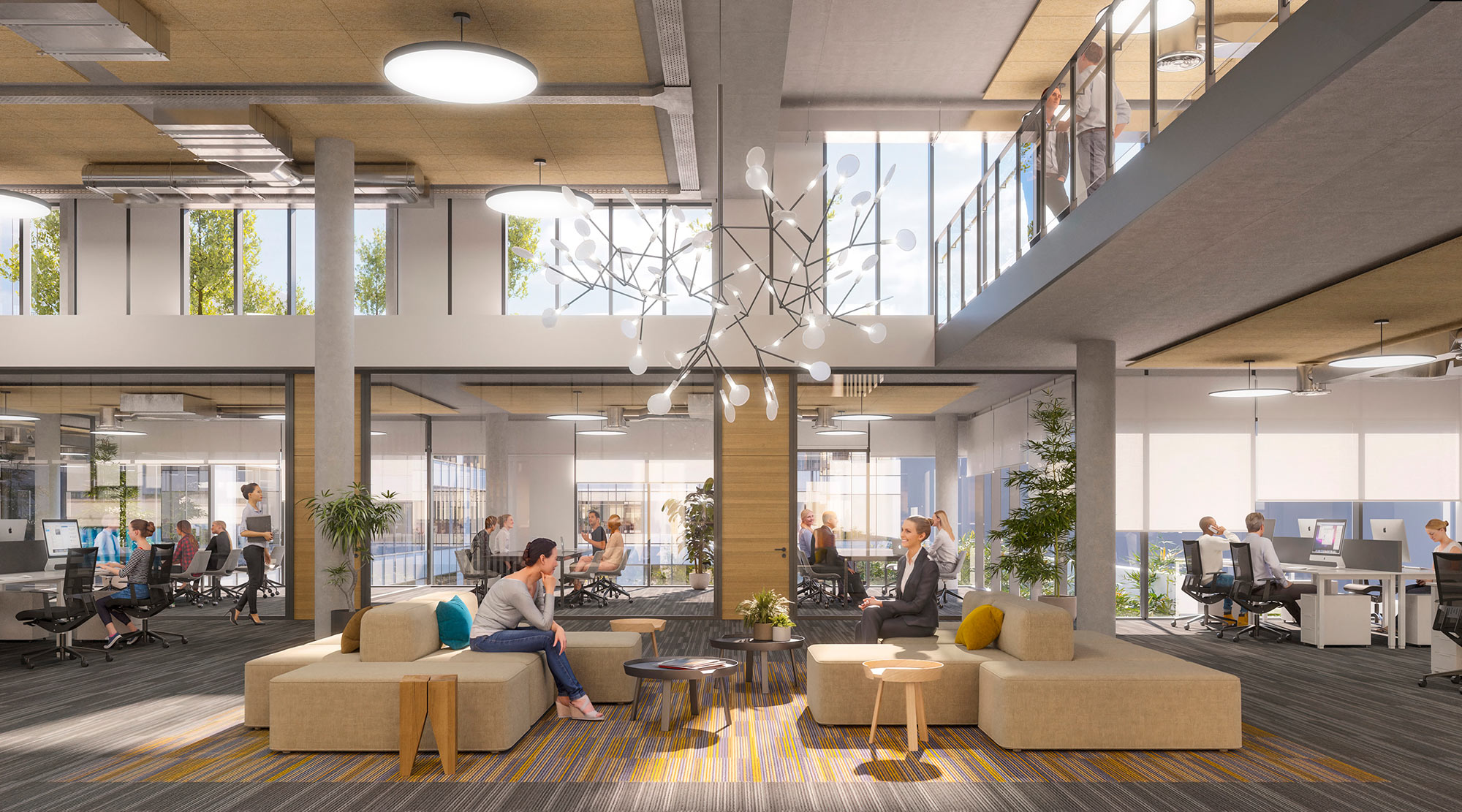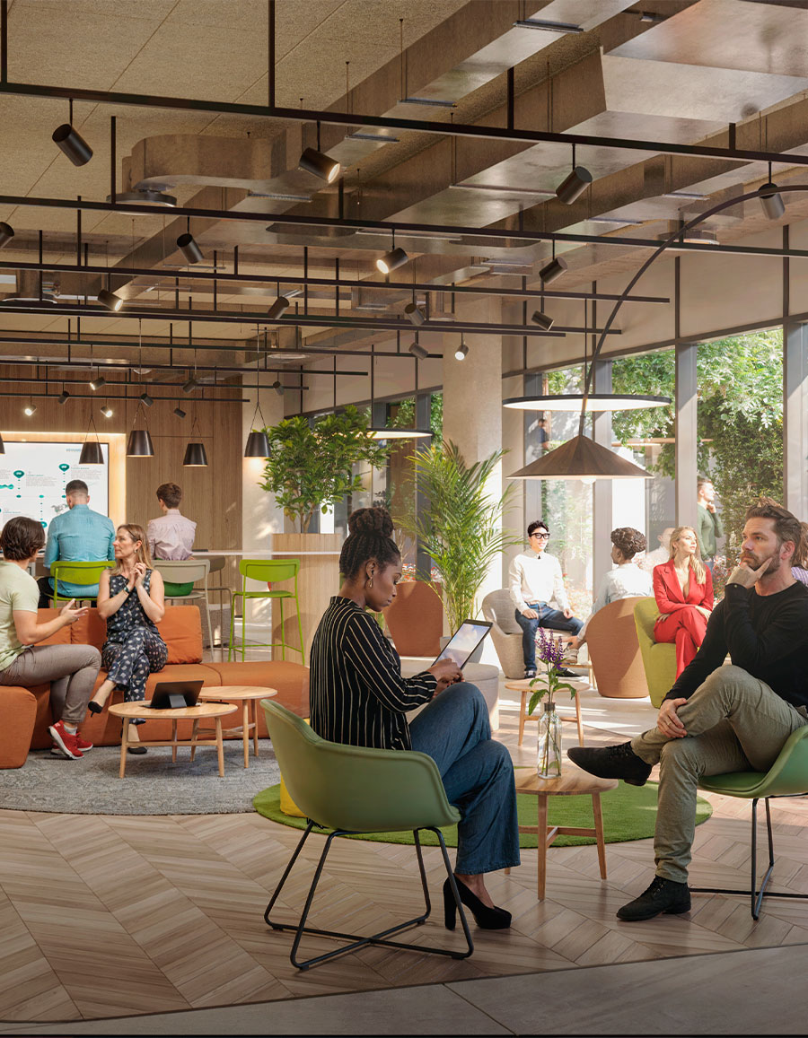 Open plan working areas provide the buzz and sociability of a busy office; quiet zones allow for focus, and there are multiple meeting and breakout rooms on each floor, including on the outdoor terraces.